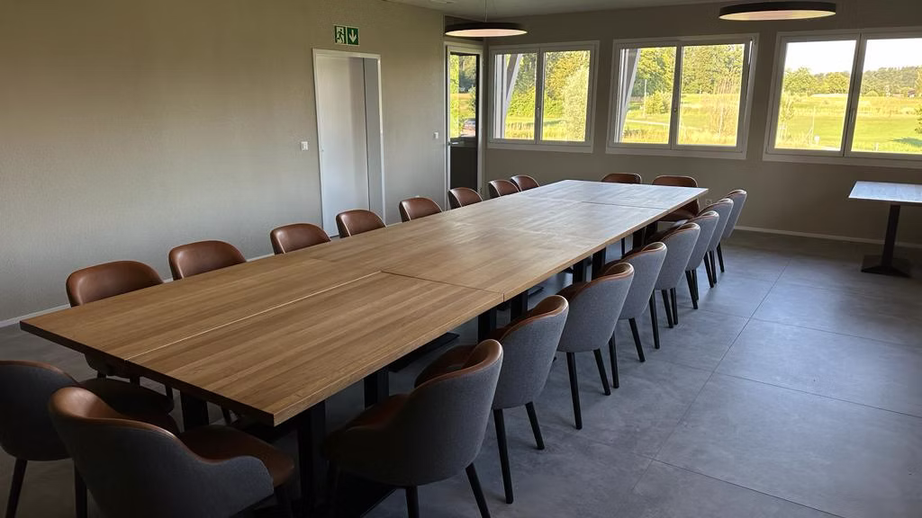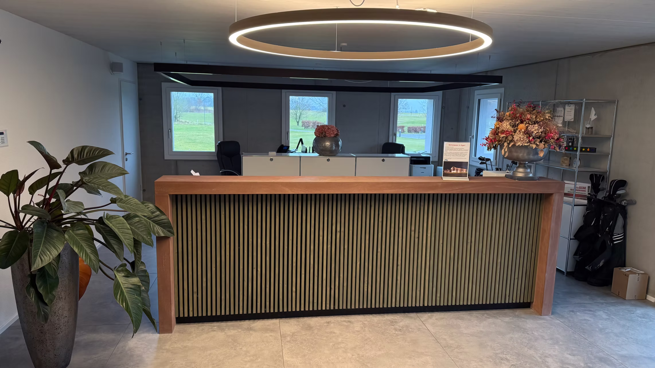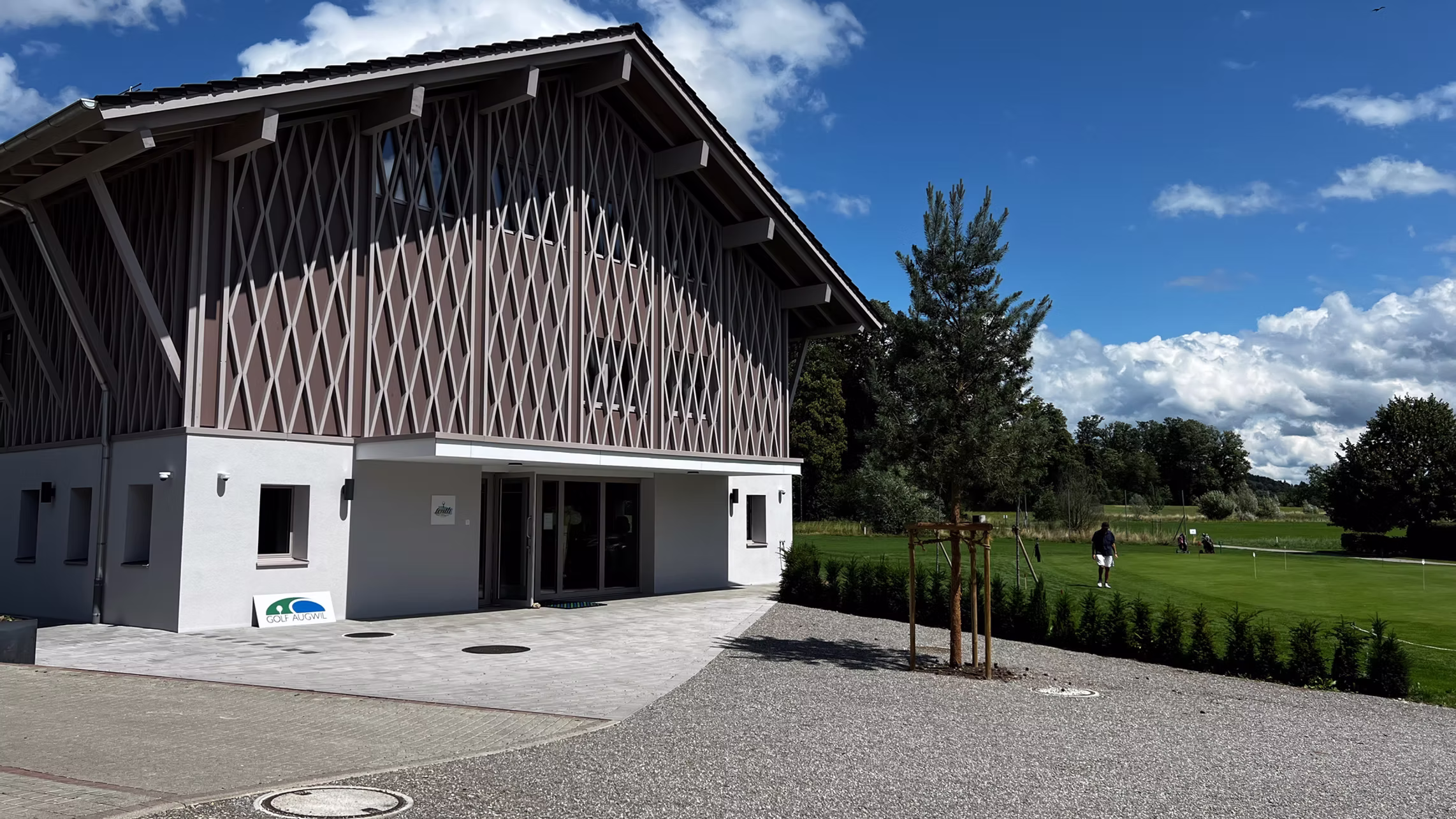 The new clubhouse was completed in spring 2023. Its elongated form blends harmoniously into the natural topography of the golf course.
